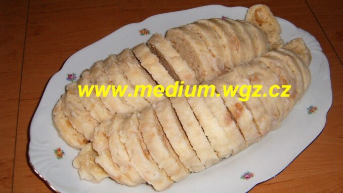 - Uděláme dvě stejně velké šičky knedlíků, které vaříme ve vroucí vodě 30 minut.