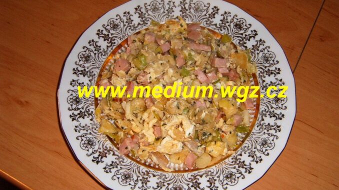 • Nakonec zalijeme rozšlehanými vejci. Nesolíme!!!