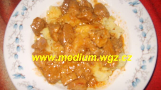 - Maso nakrájíme na kostky a cibuli nadrobno.